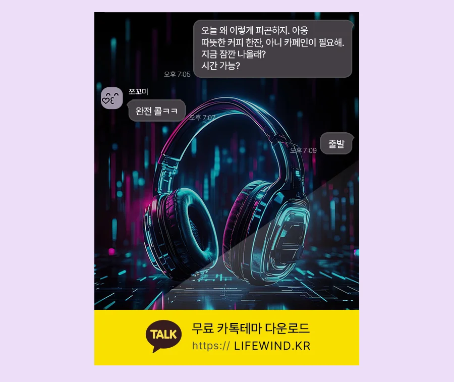 Melody In Violet Light 보랏빛 조명속의 선율 카톡테마 받기 오늘은 왜 이렇게 피곤하죠? 😅 따뜻한 커피 한 잔이 필요해요. 지금 바로 이 카톡테마로 기분...