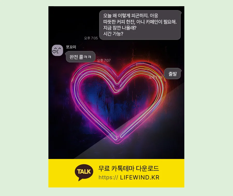 Shining Red Heart Neon Sign 붉은 하트 네온 사인 카톡테마 받기 안녕하세요! 😊 오늘은 날씨가 너무 좋아요! 이런 날은 기분도 업되고, 친구와 함께 놀고...